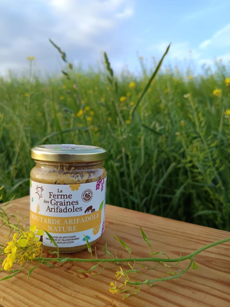 La moutarde nature est cultivée, transformée, conditionnée à la ferme. Elle est réalisée avec les graines de moutardes brune dont le goût, prononcé, saura relever toutes vos recettes, grillades et plats cuisinés.